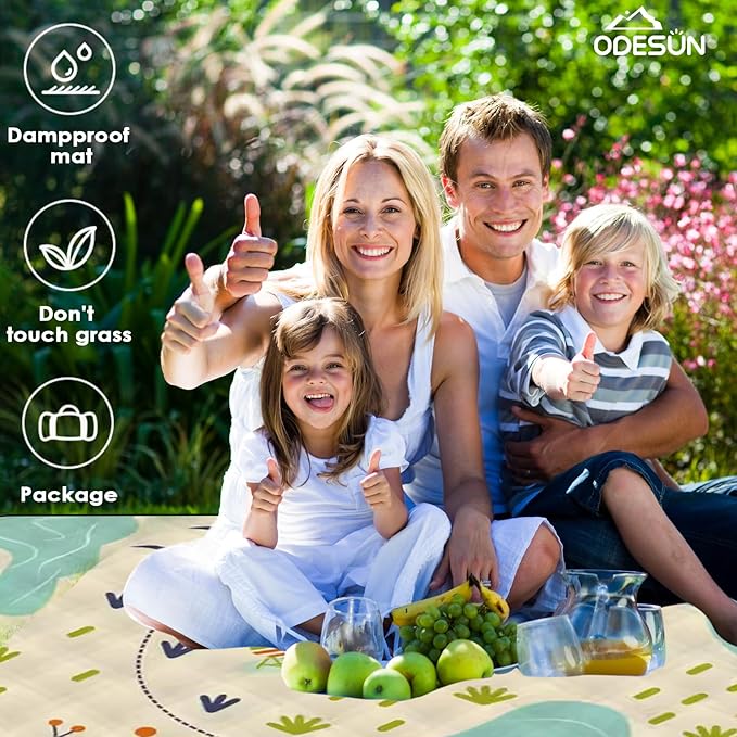 - 【Sand-free and no more grass picnic blanket】Say goodbye to grass stains and sand with our outdoor picnic blanket designed to repel grass and keep your outdoor experience clean and enjoyable.