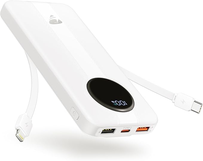 - 【Large Capacity & Intelligent Display】: This portable charger with built in cable has a large capacity of 10000mAh, which can easily meet the charging needs of multiple devices. Equipped with an intelligent LED display, which accurately shows the remaining power and charging status, allowing users to keep track of the charging situation at all times