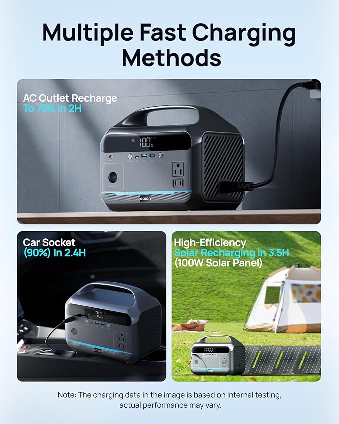 - 【Long-Lasting LiFePO4 Batteries Power Station】LiFePO4 is completely different from the NCM(Nickel-cobalt-manganese) lithium batteries.With 12 safety features,our Daran power station LiFePO4 Batteries can be used and charged more than 3500 times, while the advanced BMS protection function can monitor voltage, current, and temperature, so that your power station can last a long time.The portable power station definitely a smart long-term investment