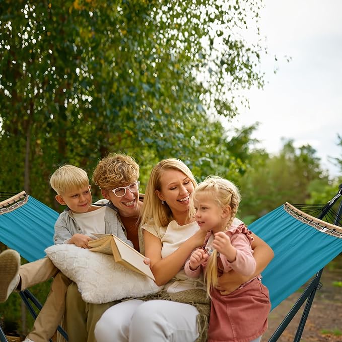 Tranquillo Canvas Hammock with Stand Heavy-Duty, Hammock Quick Fold Unfold Steel Frame Hammock, Portable Hammock Stand Spreader Bar, 600 lbs Capacity Portable Relaxation Gear, Blue