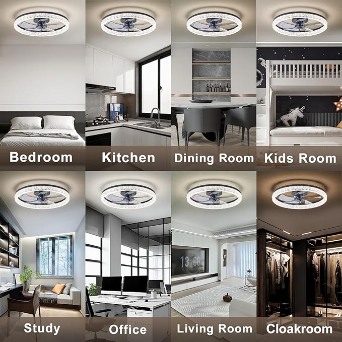 - Two Control Methods: The low profile ceiling fan for small bedroom of our brand have already completed the pairing work before leaving the factory; you can easily use the flush mount light with fan at any time just by using the remote control; it is also convenient for the elderly or people with limited mobility to operate simply; in addition, you can download the APP through the product details page to control the small ceiling fan with remote