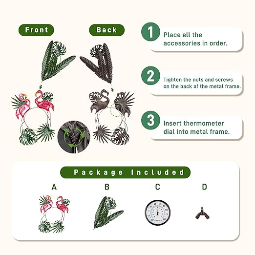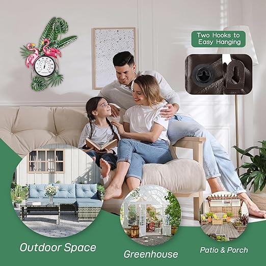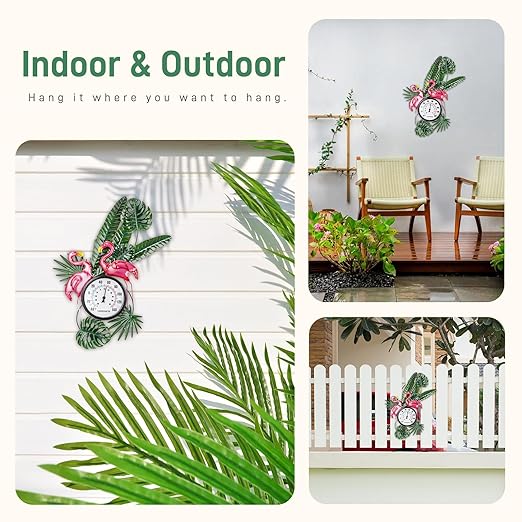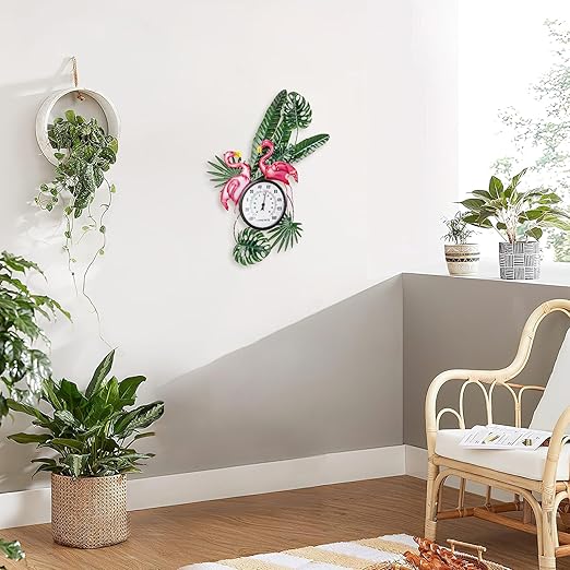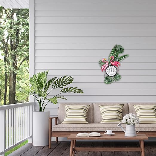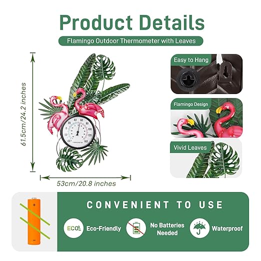 - 【Exquisite Design】Tropical Elegance: Bring a touch of the tropics to your outdoor space with this charming flamingo-themed outdoor thermometer. Featuring two vivid pink flamingos amidst lush green foliage, this thermometer is a delightful decorative piece that doubles as a functional outdoor thermometers for patio, garden, greenhouse, warehouse, office, baby room, etc.