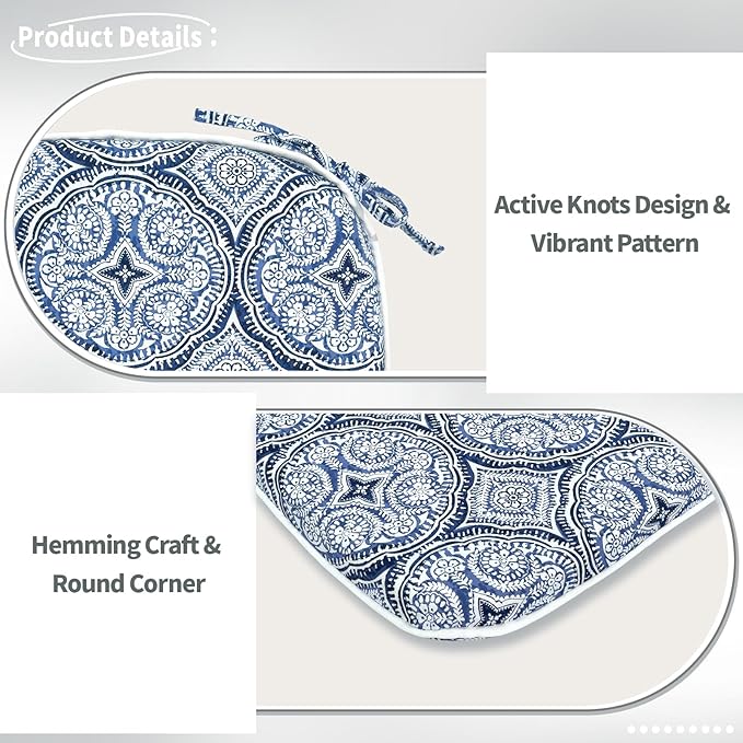 - Multiple Applications: Whether you're lounging or enjoying on your patio/balcony/garden/dining room, vibrant patterns can be adapted to your indoor and outdoor decor to add a vivid atmosphere. Attached ties keep the outdoor cushions securely in place, preventing unwanted sliding or movement while you sit.