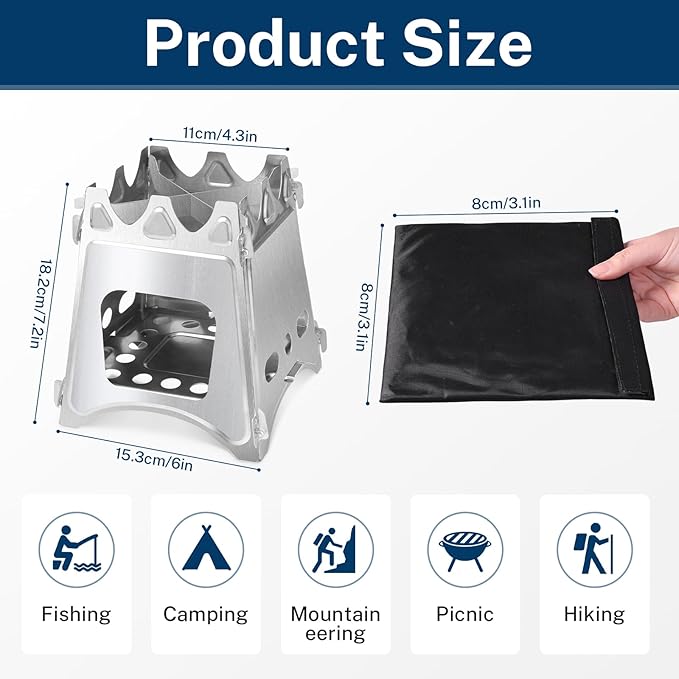 - [Easy to install] Portable wood stove has a simple structure and can be easily installed and used in just a few minutes. Add dried wood or leaves, fire up, place your cooking utensils on the stove and get ready in just 5 minutes. Perfect for hiking, camping, backpacking, BBQ, picnic, outdoor survival, emergency preparedness, etc.