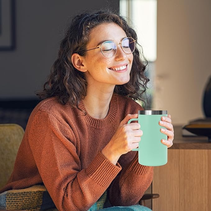 DOMICARE 24oz Mug with Handle and Lid, Stainless Steel Coffee Mug, Reusable Insulated Cup, Travel Mug with Handle, Double Wall Vacuum Coffee Tumbler for Men and Women, Mint Green, Pack 1