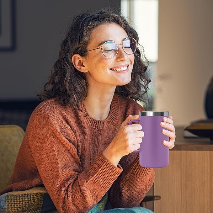 - 24oz Insulated Coffee Mug with Handle: This insulated 24oz mug with handle is made of high quality stainless steel, double-wall vacuum insulation, keeps your drinks at the perfect temperature for hours, whether it's piping hot or refreshingly cold.