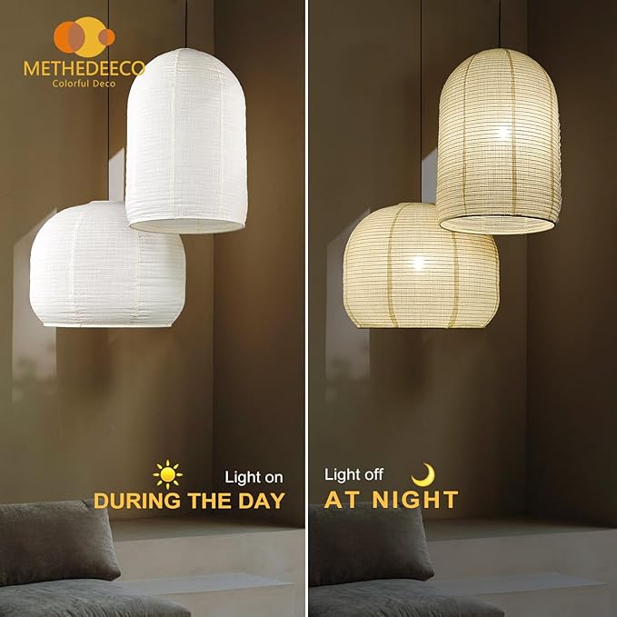 - Material and craftsmanship: Unlike paper lampshades, we use high-quality linen fabric that emits a soft and atmospheric glow, making it an ideal choice for living rooms or bedrooms. The fabric is wrinkled for the first time. You can spray some pure water with a spray and hang it. Normally, wrinkles will decrease and return to their original shape within 3-5 days