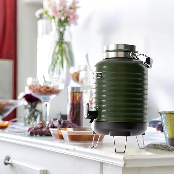 - Unique Exterior - All-in-one Designed by professional designers, these beverage dispensers have a unique and elegant appearance which combined wild and modern elements. The powder coating on the surface has very strong scratch resistance. Double-wall stainless steel vacuum insulation allows for maximum temperature retention.