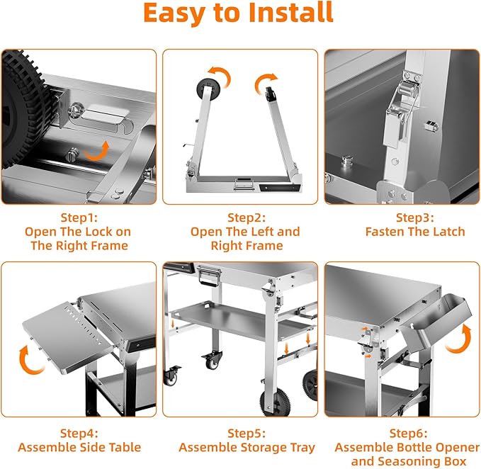 - MOBILITY AND STABILITY: Our grill carts with wheels is equipped with two swivel casters with brakes to enhance mobility and stability. Whether you're hosting a barbecue in the backyard or a party indoors, you can easily move the cart into place and lock it securely in place