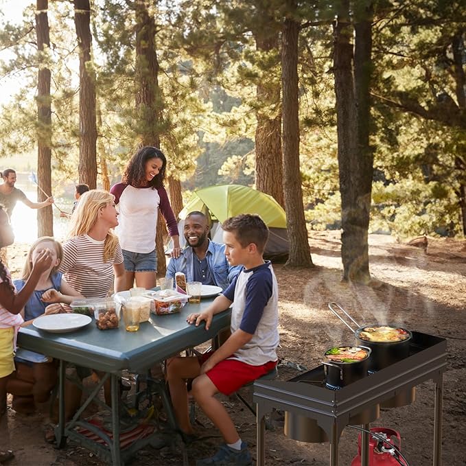 - Versatile in Use: Work with griddles, soup pots, baking trays, barbecue grills as well as deep frying. Get this 3 burner propane stove to enjoy a well-experienced outdoor kitchen even in yards, patio, camping, RV trips, tailgate parties or any outdoor events