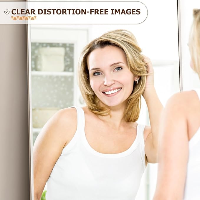 - High Definition and Explosion-Proof: Our full-length wall mirror is crafted from high-quality float glass, providing ultra-high-definition imaging and distortion-free reflection. The back is covered with an explosion-proof film, ensuring safety in case of accidental damage