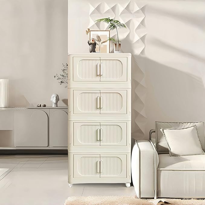 Holaki 156 QT Storage Bins with Lid, 4 Tiers Collapsible Closet Organizers, Stackable Plastic Storage Bins Cabinet Box with Wheels and Magnetic Door(Opaque)