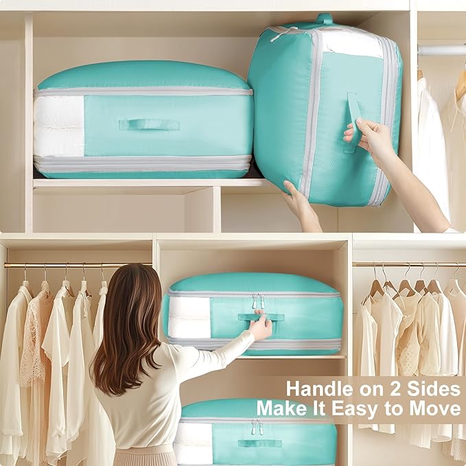 - [3-Layer Compression Bags] Our ultra space-saving self-compression organizer features a unique 3-layer compression system, offering not only more storage capacity than standard 2-layer designs but also greater flexibility. It’s perfect for blanket storage, comforter storage, pillow storage and bulky items, allowing you to optimize every inch of space in your closets or underbed storage containers.