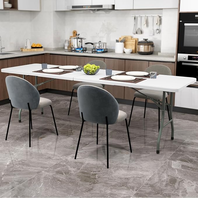 - Secure Folding & Expanding: Equipped with a safety lock and joint locks, the table folds in half with high security for easy storage and transport. This portable folding table with 36.5 lbs net weight will provide much convenience for you.