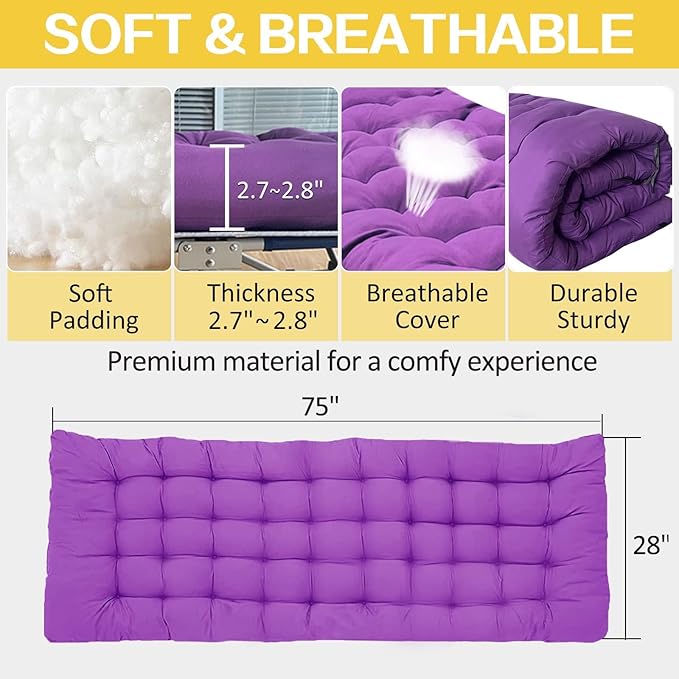 - 【Comfortable】The head of our camping cot is a incline design. So it doesn't need a pillow! Gentle incline promises no more neck or shoulder ache! The mattress is soft and thick, so this is a very comfortable folding cot.
