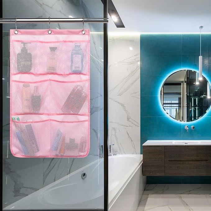 - Quick Drying Mesh Material: Crafted from 100% tear-resistant polyester mesh fabric,upgrade and reinforce,Designed with breathable mesh that allows water to drain easily,ensuring your shower essentials dry quickly and stay clean,this bathroom organizer is designed to last.It effectively drains water,ensuring quick drying and preventing your items from sitting in water