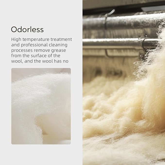 - THE BENEFITS OF 100% WOOL: Wool fibers have the ability to absorb moisture deep into their core, keeping moisture away from the skin. In winter, wool helps retain body heat, while in summer, it aids in maintaining a cool body temperature.