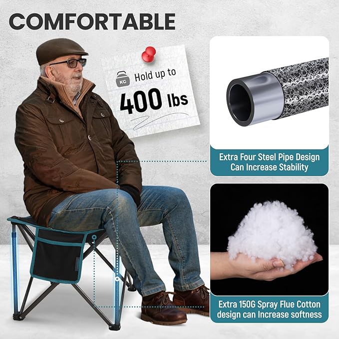 - Padded Seat with Soft Cotton Filling: Featuring a seat with soft, hollow cotton padding, this stool delivers a level of comfort that will make you forget you're sitting on a portable chair. Enjoy added cushioning that enhances your relaxation time outdoors.