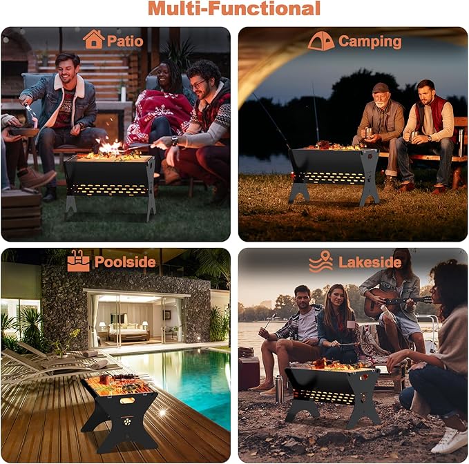 - đ„ăMultiple UsesăIf you are an outdoor person then this grill is a must have, this multi-scenario charcoal grill can be used as outdoor fire pit, BBQ grill, bonfire pit, perfect for backyard, camping, bonfire, campfire, outdoor entertaining, beach, parties. Ideal gift for your friends or family.