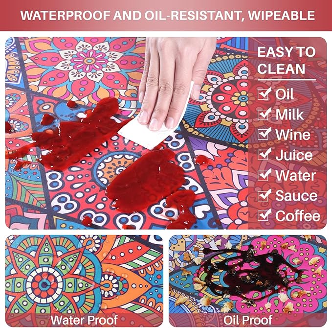 - 【Water and Oil Resistant】The table cloth providing excellent water and oil resistance. Stains can be easily wiped away, keeping the table clean and tidy. Although it cannot be machine washed or bleached, you can easily clean it with a damp cloth. Wrinkles can be ironed out from the back using an iron, ensuring that it maintains its good condition even after long-term use.