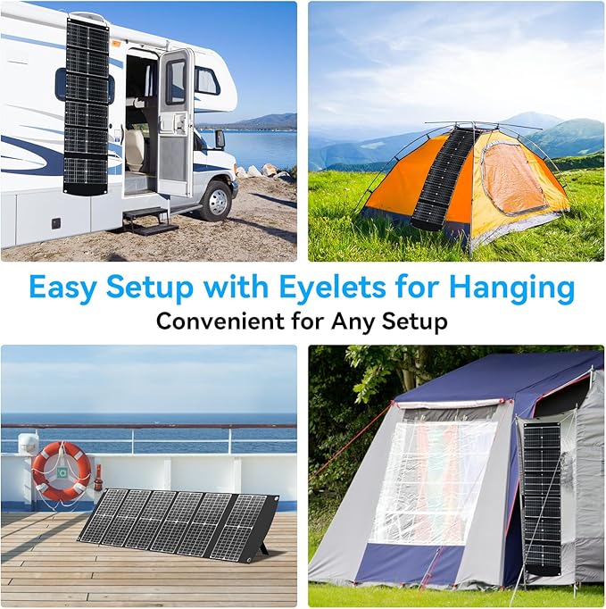 - Lightweight & Portable 6-Fold Design: Weighing just 6 lbs and folding to the size of a laptop bag. The folded size is 15.7x10.5 inches.this 100 watt solar panel is perfect for camping, hiking,fishing, and RV trips. Equipped with grommets, it’s easy to hang on tents or RVs, offering reliable, on-the-go charging with effortless portability