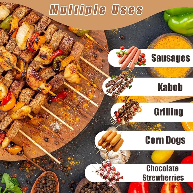 - 【Widely Used】The skewers can be used for marshmallow, hot dogs, sausages, kebabs, roasting,and also suitable for plant stakes,garden sticks,plant supports,floral picks,crafts and much more.