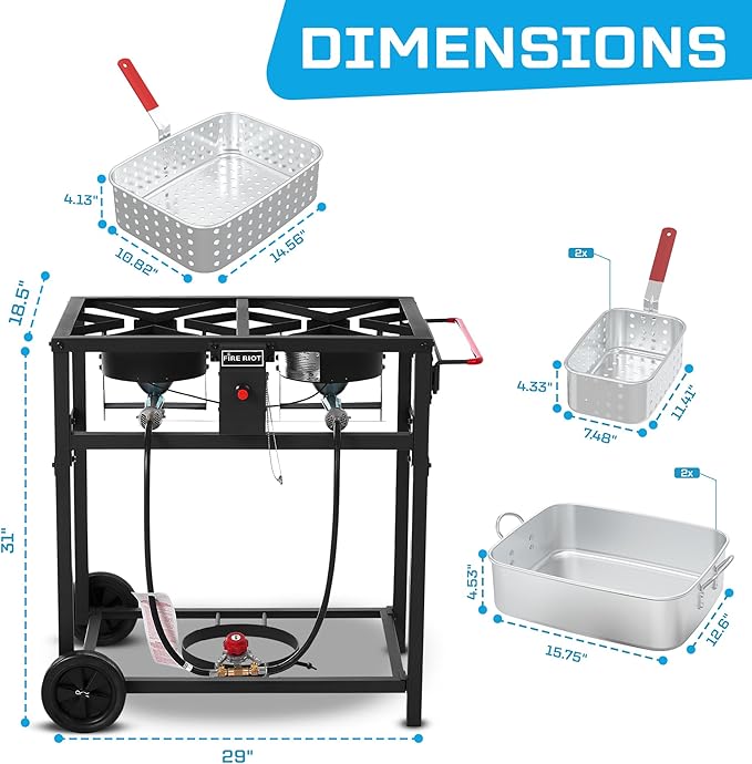 - LIGHTWEIGHT & DURABLE CONSTRUCTION: Crafted from high-quality and heavy-duty steel, this double burner ensures fast, even cooking with superior heat distribution. The sturdy frame, with a max weight capacity of 100 lbs, is coated with high-temperature paint for enhanced durability and easy cleanup.