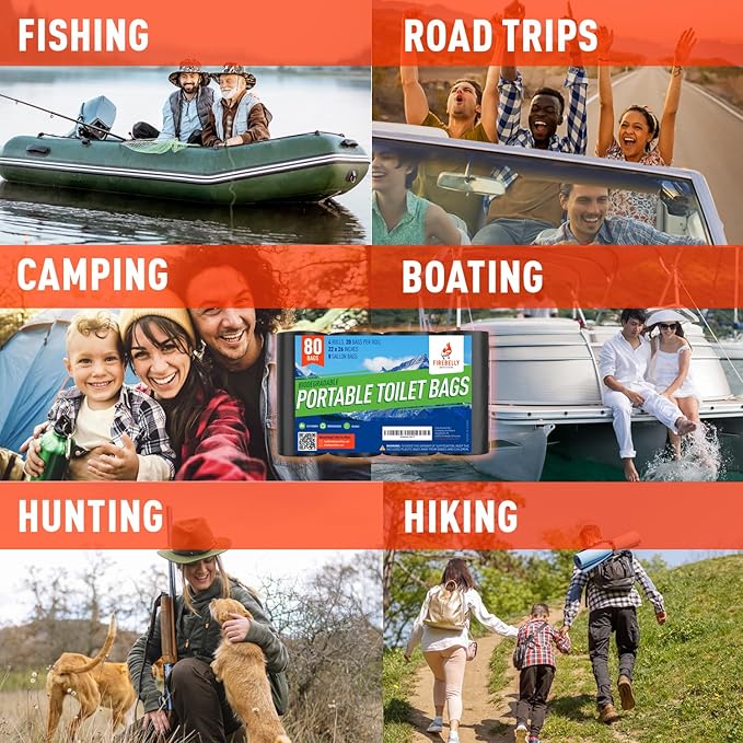 Firebelly Outfitters Portable Toilet Bags for 5 Gallon Bucket - 80 Biodegradable Camping Poop Bags - Leak-Proof, Durable Waste Bags for Outdoor, RV, & Emergency Use - Easy Disposal