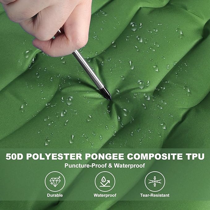 - Durable and Reliable Quality:Crafted from high-quality 50D Polyester Pongee composite TPU, our camping mattress is built to last. It can support up to 330 pounds and is resistant to punctures, making it the perfect companion for all your outdoor expeditions. The waterproof design ensures it stays dry and comfortable in any weather conditions;
