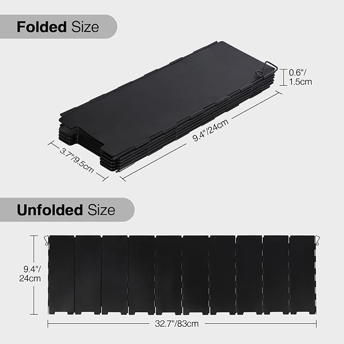 - 10 Plates Windscreen: Our stove windscreen consists of 10 flexible panels. The unfolded size is 32.7x9.4”, perfectly fitting various stove types, including camping stoves, solo stoves, and integrated stoves. You can adjust its shape according to the size of the stove.
