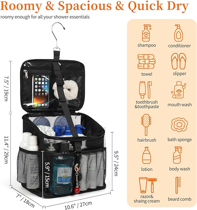 - Quick-Drying and Breathable: The mesh design allows water to drain easily, so your bathroom caddy portable won't get water-logged when showering. Plus, the breathable fabric keeps your toiletries dry and ventilated