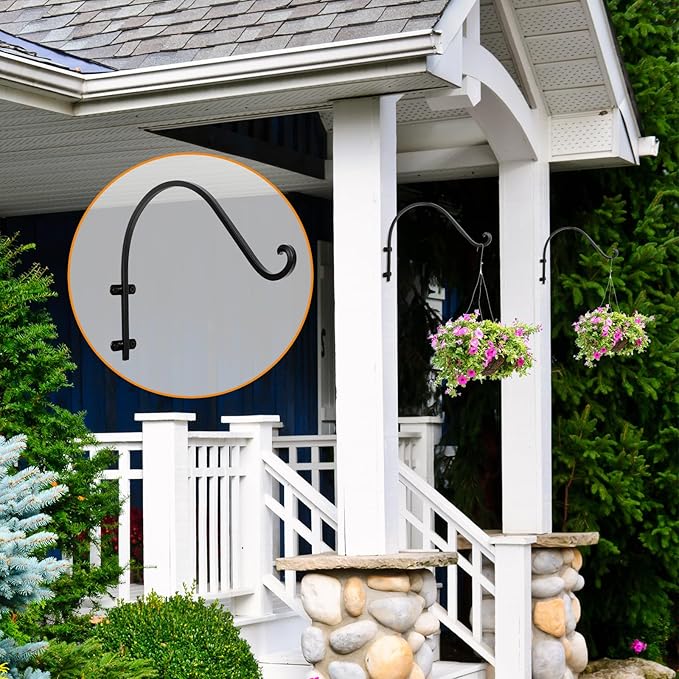 - VERSATILE DESIGN: Our plant hanger brackets can be used to hang a variety of decorations in your daily life, such as hanging flower pots, bird feeders, lanterns, hanging signs, holiday decorations, lamp wind chimes, etc. Can be used in homes, gardens, corridors, etc. Plant hooks add beauty to your home or garden.