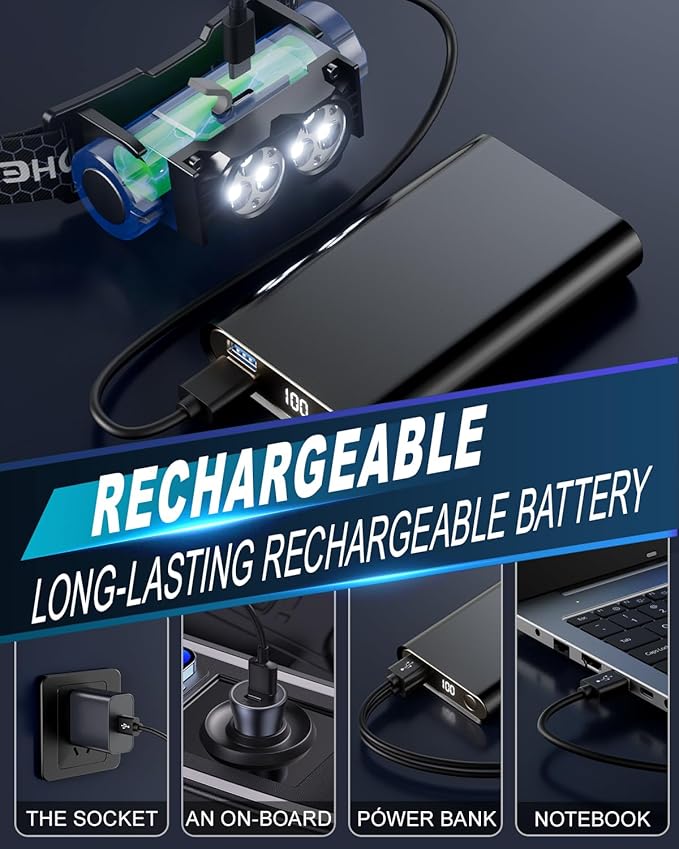 Headlamp Rechargeable 2PCS,4500L Super Bright Light Bright LED Rechargeable Headlight with White Light, Waterproof Head Lamp with Headband for Outdoor Camping, Hiking,Camping Essentials,Working