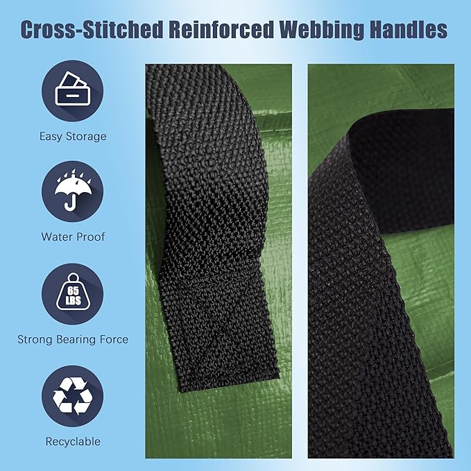 4 Pack Large Strong Moving Bags with Zippers & Carrying Handles - Water-Resistant - Heavy Duty Storage Tote for Space Saving, Fold Flat, Alternative to Moving Box (Olive Green)