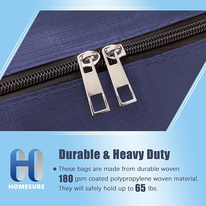 4 Pack Large Strong Moving Bags with Zippers & Carrying Handles - Water-Resistant - Heavy Duty Storage Tote for Space Saving, Fold Flat, Alternative to Moving Box (Blue)