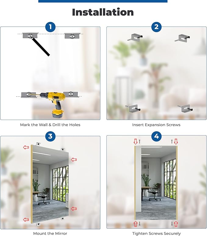 - Crystal Clear Reflection – High reflectivity up to 99% ensures accurate, distortion-free images. The Chrome 26" x 60" mirror provides clear and natural reflections, ideal for daily use, exercise, or enhancing your room’s ambiance.