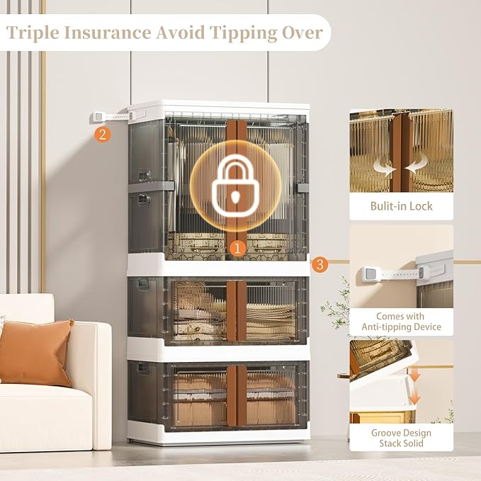 - 【Easy Assembly Closet Bins】This large-capacity wardrobe sets up in just 5 minutes, simply connect the lightweight panels, secure the buckles, and straighten the frame for instant clothes hanging or storage space. Featuring a dual-access design, you can effortlessly grab items from the top flip-lid or securely open the front door with built-in lock buckles to prevent accidental openings and dust intrusion, keeping belongings neatly protected.