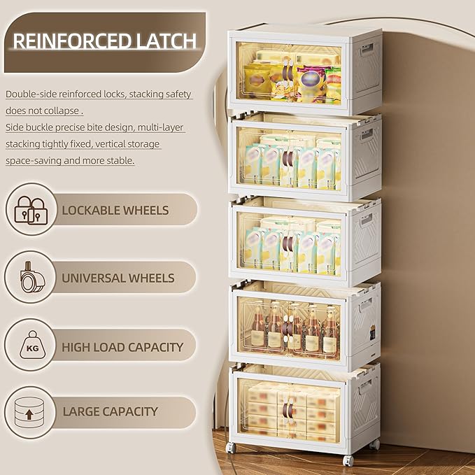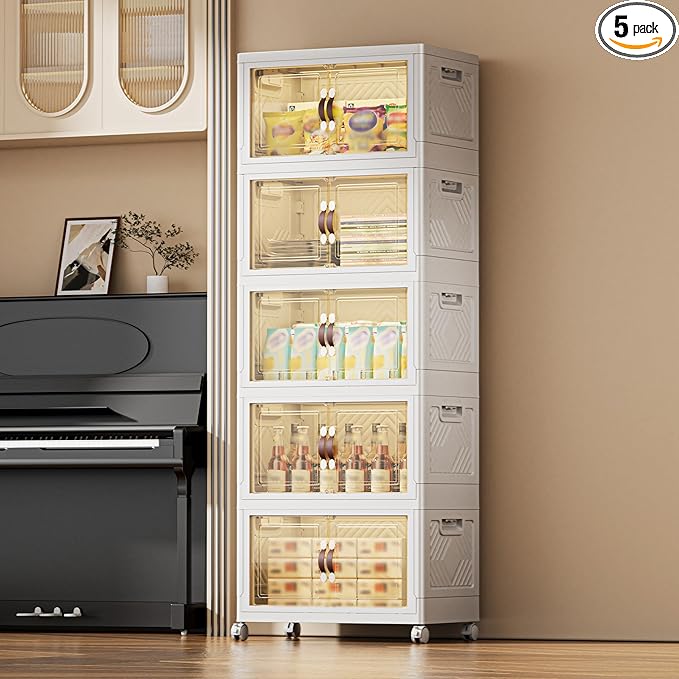- Efficient Space Tidying: This stackable storage bin size is 70.7 x 25.6 x 16.5 inches. Includes 5 organiser box with wheels and 1 top cover to prevent dust intrusion. The current item option is 5 tier. This stackable storage bin has a maximum capacity of 424 QT (106 Gal). When you feel your space is cluttered, choose us for your storage needs.