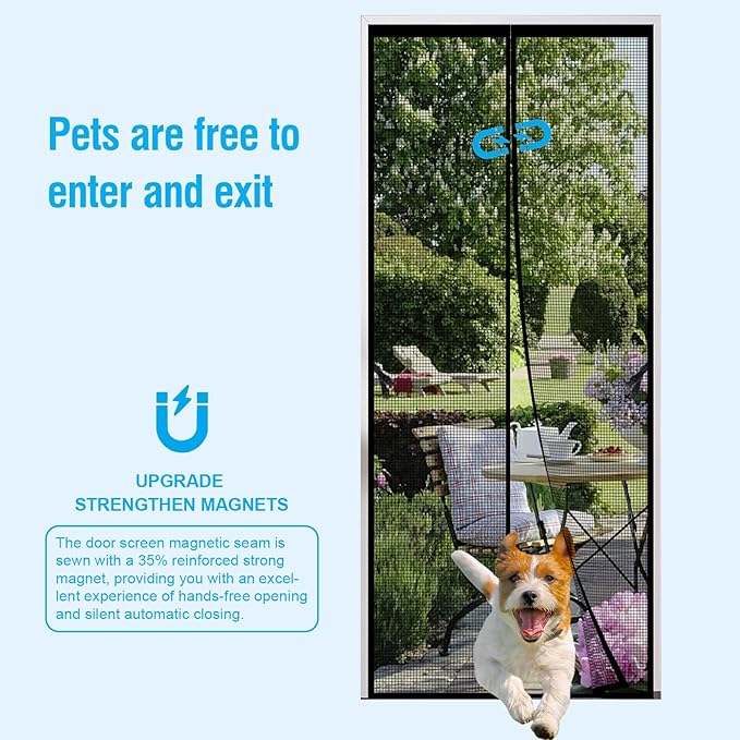 - Upgraded Reinforced Magnets: Powerful magnets are sewn into the seams for hands-free opening and silent automatic closing. Even children, small dogs, and cats can easily pass through without assistance.