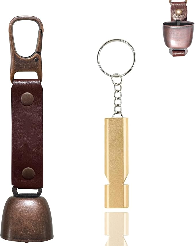 - Dual- Bear Protection System——Combine the natural jingling of rust-resistant zinc alloy bells with a 120dB emergency whistle, designed to project sound 300+ feet through dense vegetation when hiking or camping.
