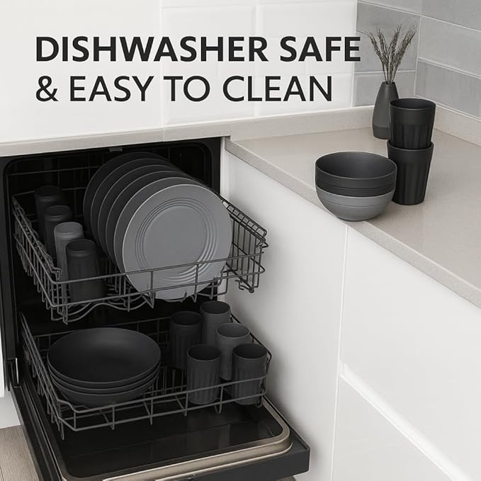 - Complete Dining Solution: Includes 24-piece wheat straw dinnerware set for 8; large plates, bowls and cups; perfect for family gatherings; lightweight plates and bowls sets ideal for everyday use; comes with convenient storage bag for organization.