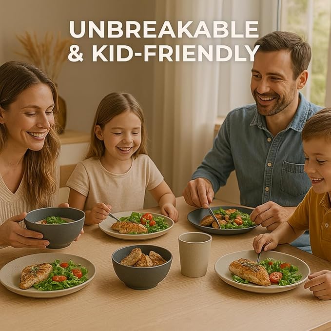 - Premium Sustainable Convenience: Made from premium wheat straw material; unbreakable plates and bowls sets withstand daily use; shatterproof design perfect for kids, camping, RV trips; casual dining experience.