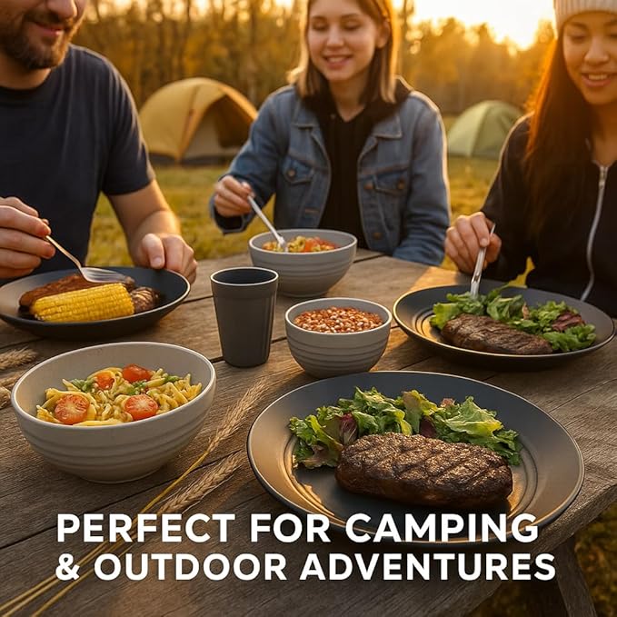 - Premium Sustainable Convenience: Made from premium wheat straw material; unbreakable plates and bowls sets withstand daily use; shatterproof design perfect for kids, camping, RV trips; casual dining experience.