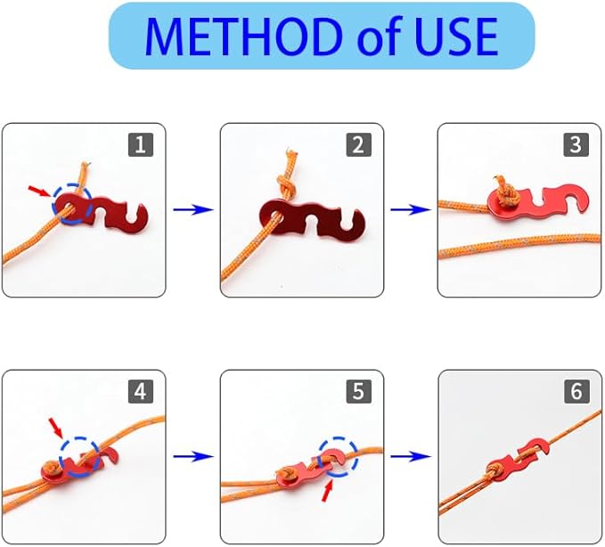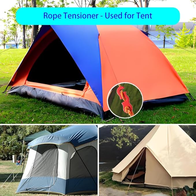 - 【Innovative Design】Our product rope adjusters can easily eliminating the hassle of tying and retying knots in cold or humid weather. Quicker and easier than a knot, it will not slip or jam, And can protect the tent safely from strong winds and heavy rain.
