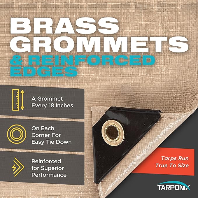 - Reinforced Hem for Extra Strength: There are poly ropes sewn in the hem along all edges that protect from tearing and deformation making this tarp an asset for heavy-duty use.