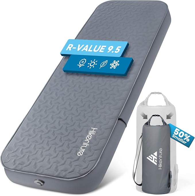Hikenture 4" Thick Self Inflating Sleeping Pad, Foam & Air Camping Mattress, 9.5 R-Value Insulated Sleeping Mat, Portable All Season Camping Pad for Tent, Car, Cot, Truck
