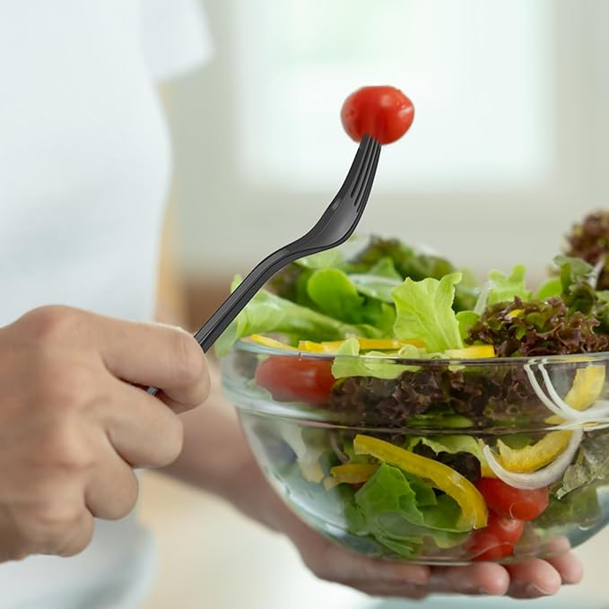 - 【Premium Material】: Dealusy black plastic forks heavy duty are made of food grade polystyrene, total BPA free and toxin free for your healthy meals.