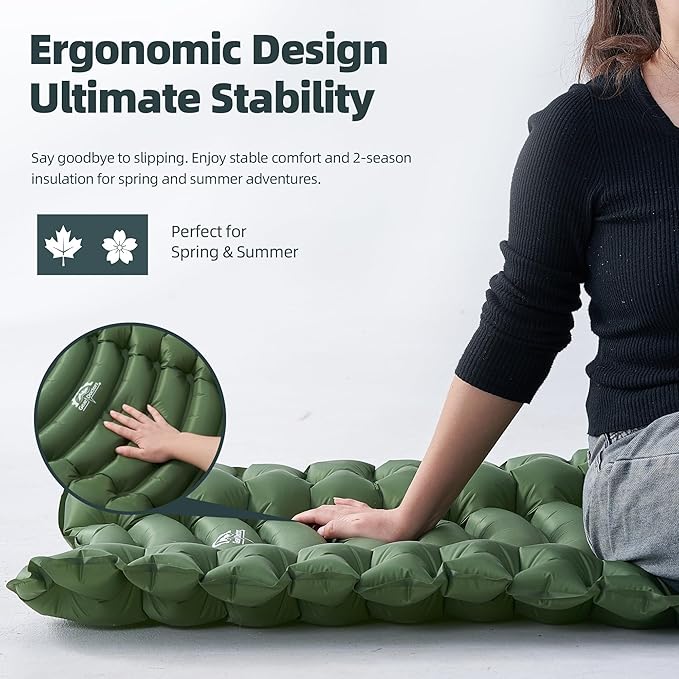 - ๐๐ซ๐ ๐จ๐ง๐จ๐ฆ๐ข๐ ๐๐๐ฌ๐ข๐ ๐ง, ๐๐ฅ๐ญ๐ข๐ฆ๐๐ญ๐ ๐๐ญ๐๐๐ข๐ฅ๐ข๐ญ๐ฒ: Perfect for side and back sleepers. Etherโs varying thickness powered by its ErgoCushion U-shape design prevents slipping, and ensures secure, hugging comfort for a stable, restful sleep on any terrain. Perfect for spring and summer camping with its 2-R value insulation. Itโs a 2 season lightweight travel mattress and camping pad that is perfect for backpacking, sleeping in tents, car camping sleeping pad, or even for kids campingโ๐ญ๐๐๐ ๐๐๐๐๐๐ , ๐๐๐๐ ๐๐๐๐.
