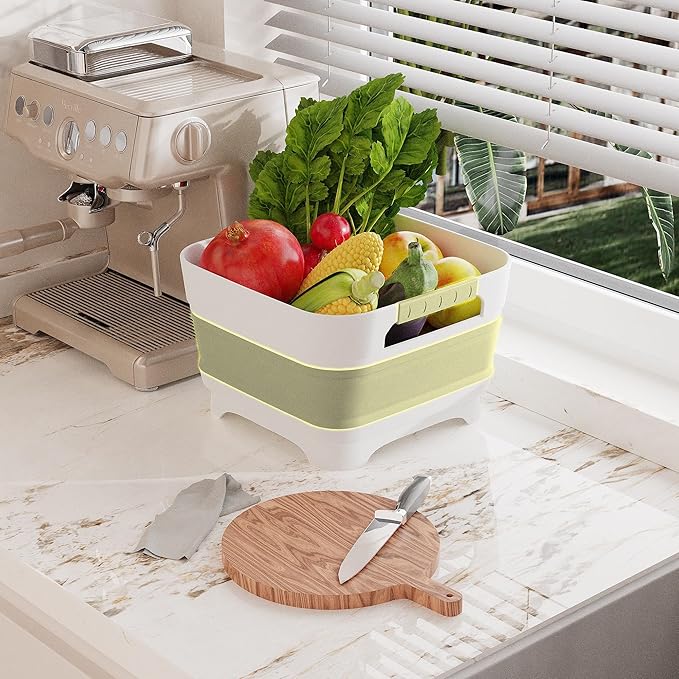 - 【Collapsible & Ultra-Durable】The dish basin maintains its space-saving foldable design, allowing you to adjust its size as needed and collapse it easily for storage, saving precious space. Dimensions remain the same—expanded size: 12.4 x 12 x 7.9(h) inches, collapsed: 2.8 inches—with an updated, sturdier build using superior plastics and silicone.
