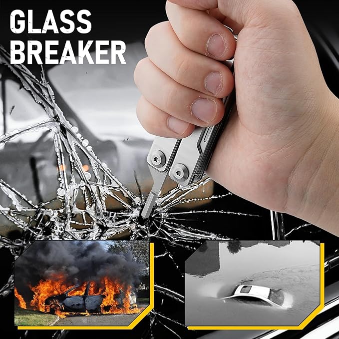 - Keychain Mini Multitool Scissors: BIBURY BI2052A mini multitools is designed as an EDC tool & Emergency gadget, it combine various functions for daily life and outdoor adventure: scissors, window breaker, seat belt cutter, file, replaceable scalpel blade, bottle opener, tweezers, keychain. Easily meet daily and outdoor needs, ensuring you are always ready for any emergency